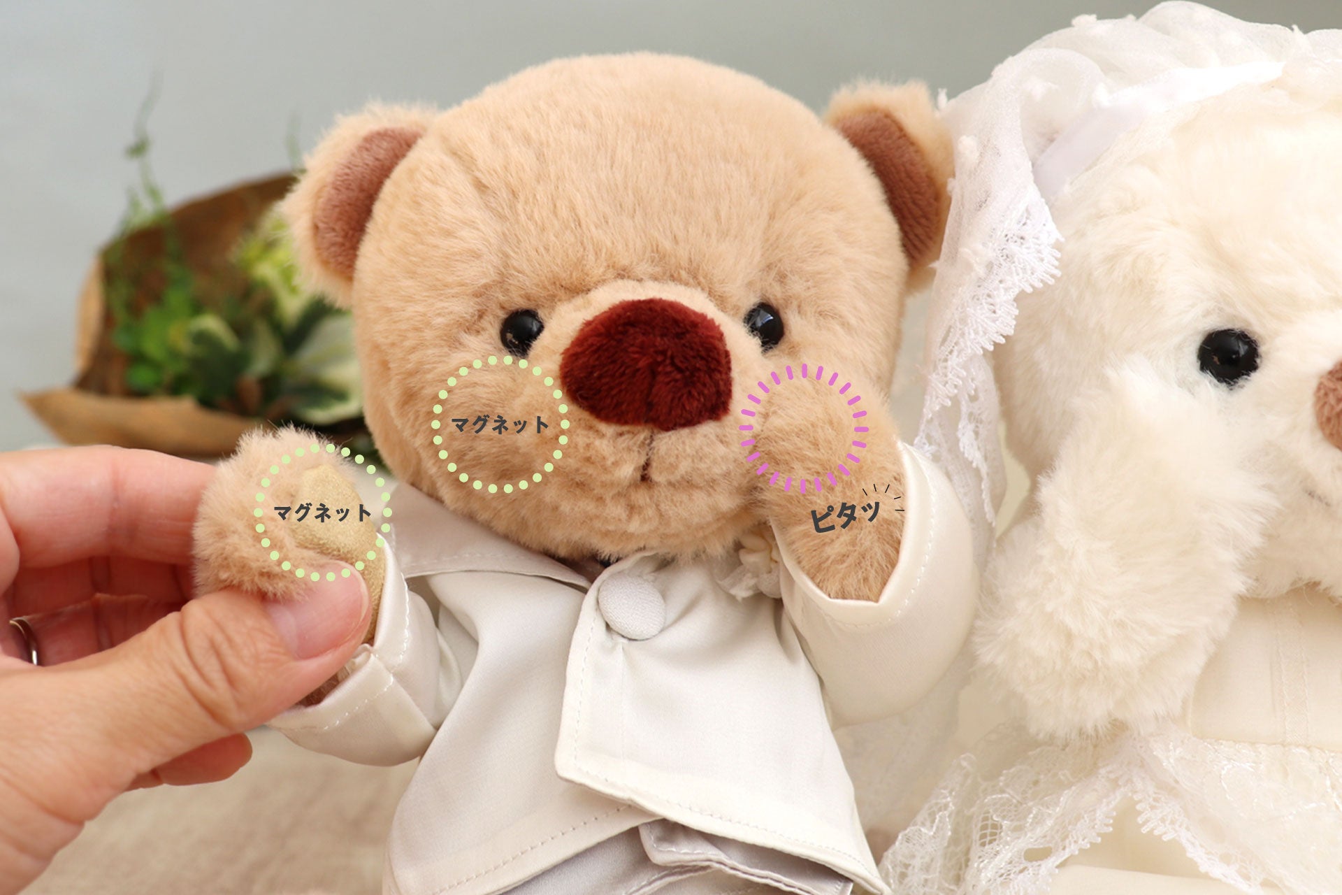 プティルウは、テディベアの両手に入ったマグネットで手をつないだり、表情をつけたりできるウエディングベア「ウェディングベアKUU&FUU」と「カジュアルウェディングベアKUU&FUU」を発売開始しました。