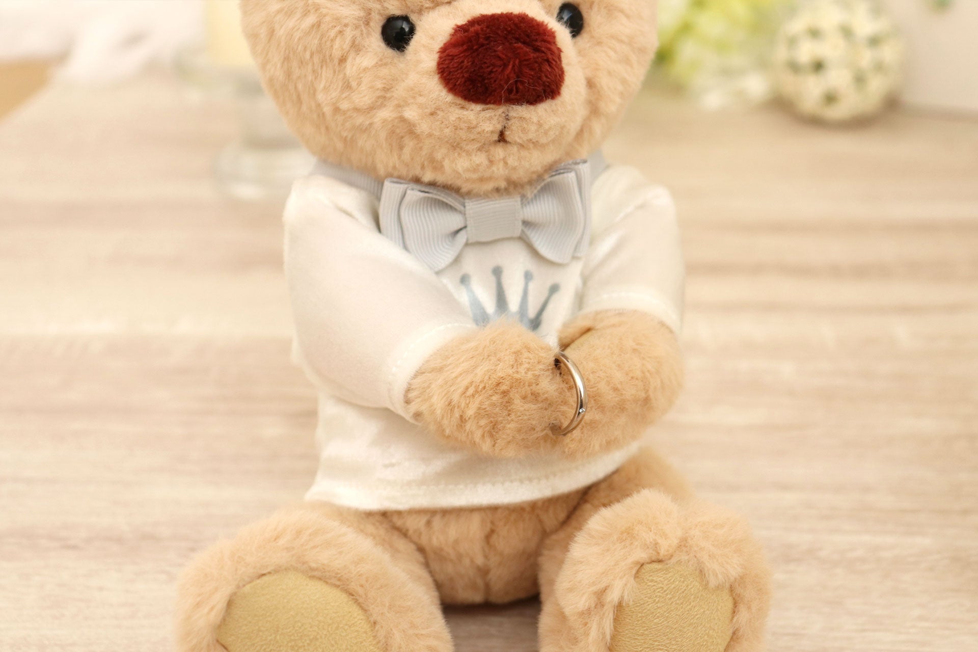 結婚式で、新郎新婦の代わりにウェルカムスペースでゲストをお迎えしたり、お色直しの際に新郎新婦の代わりに席に座らせたりするウェディングベア。