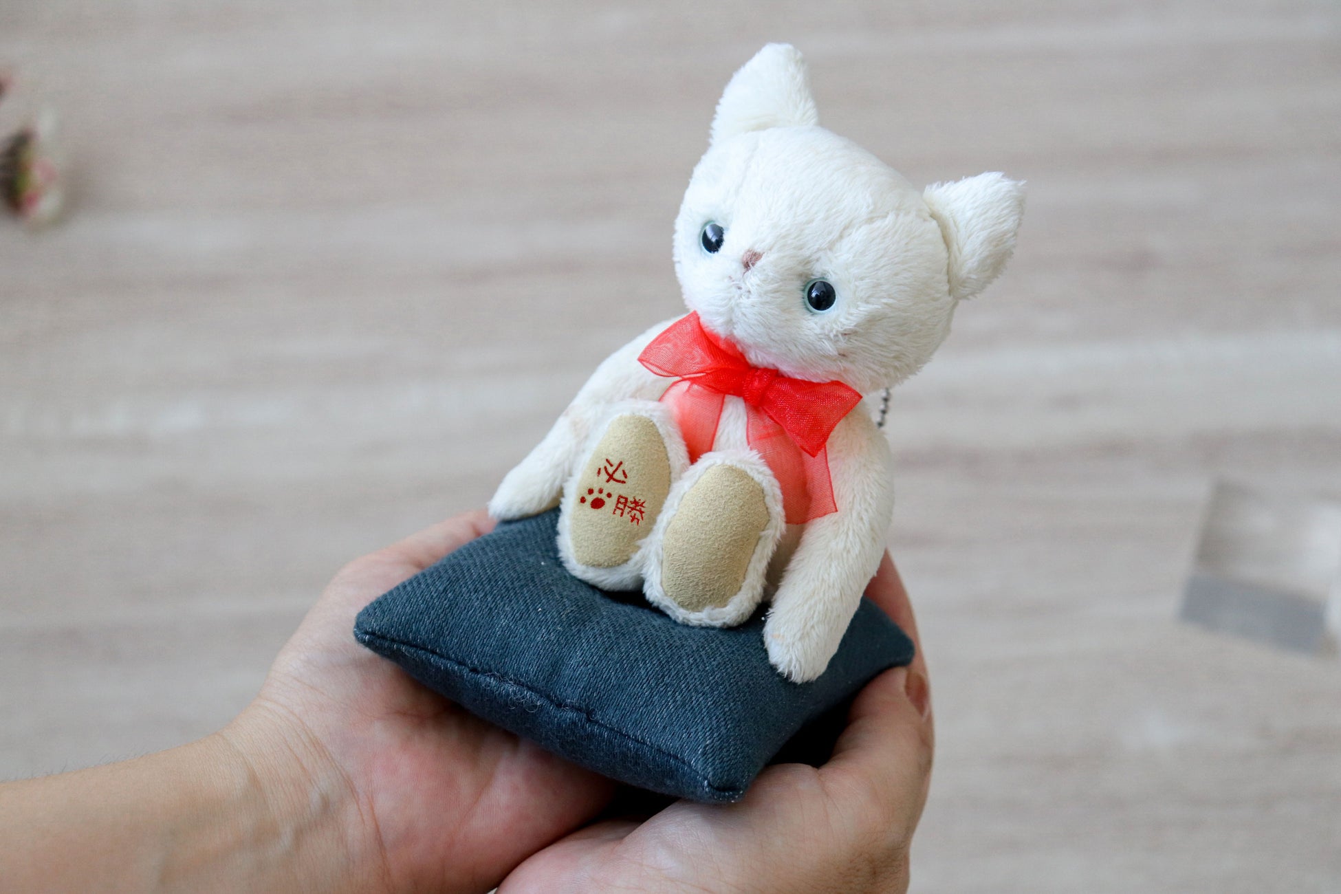 試験や試合の日には付属のボールチェーンでバッグに付けて、一緒に頑張った必勝祈願ネコを会場まで連れていけば、過度な緊張をせずにいつも通りの力が発揮できるはず。