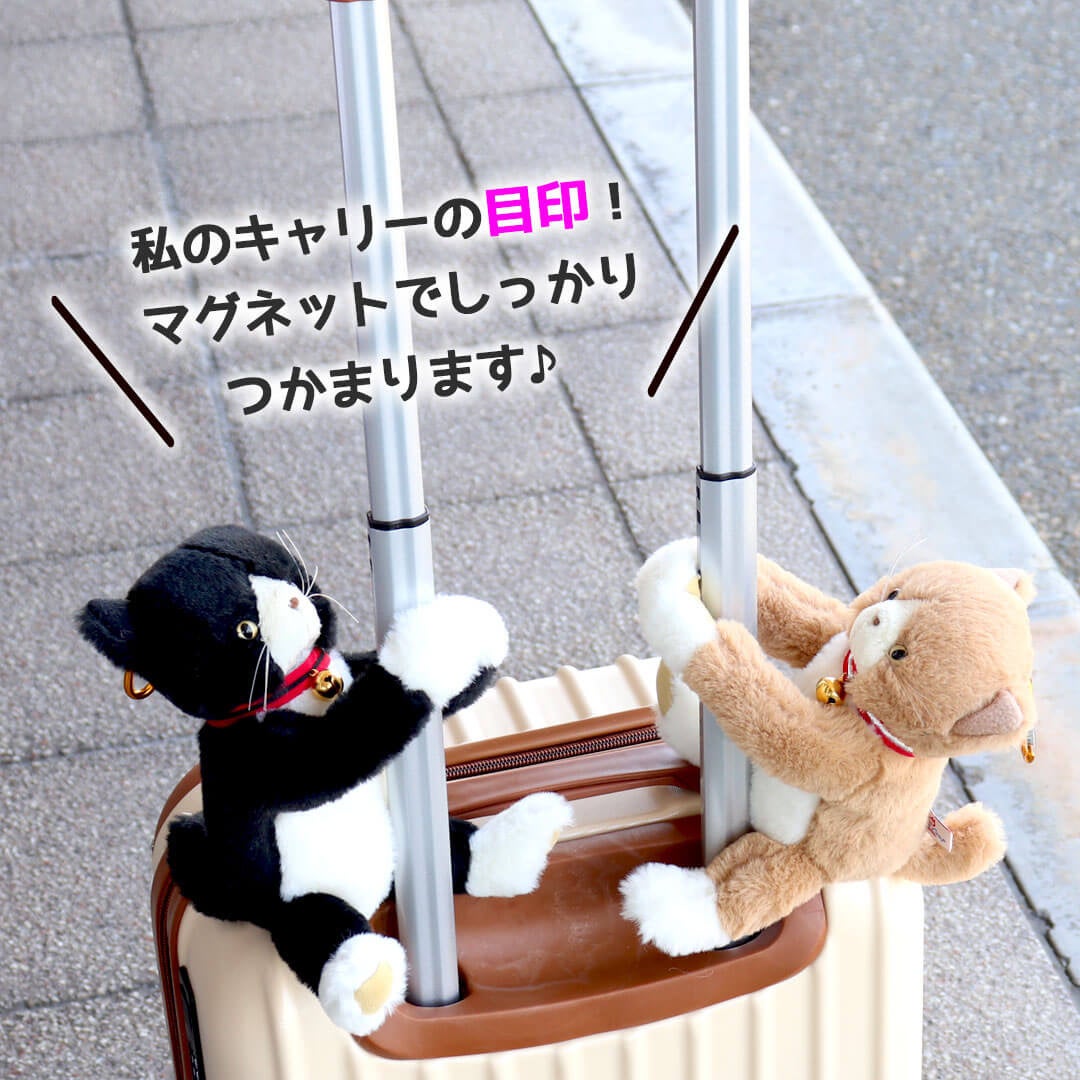 両手のマグネットや付属のカラビナで、スーツケースやキャリーオンキャットにくっつけることができます。