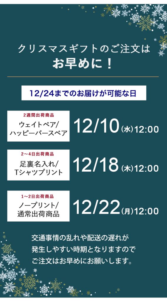 12月24日までに届くご注文は、締め切り日までにお申し込みください。