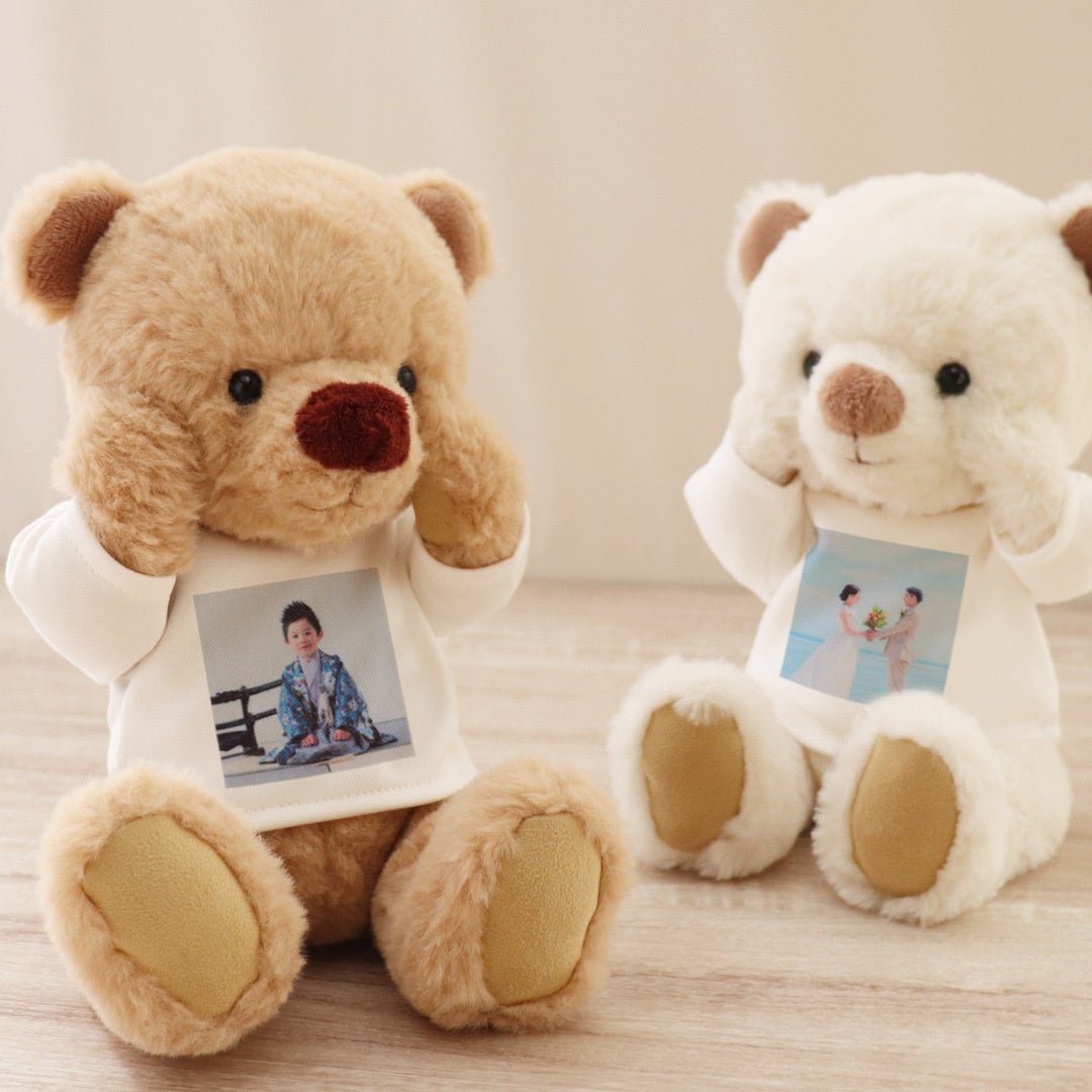 お子さまとの写真や家族写真をTシャツにプリント可能。世界に一つのオリジナルベアを作成できます。