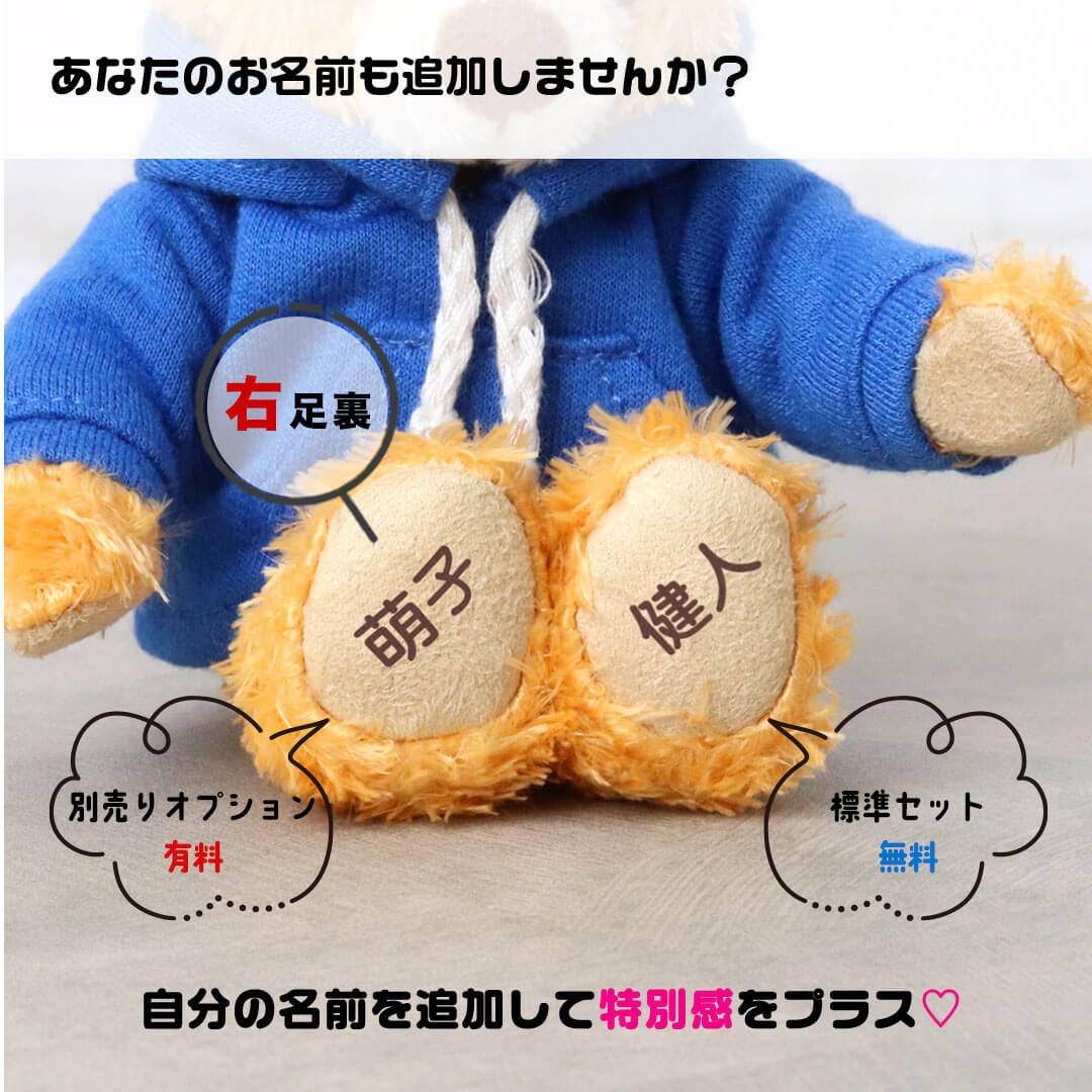 自分の名前を追加してより特別感のあるテディベアにすることができます。