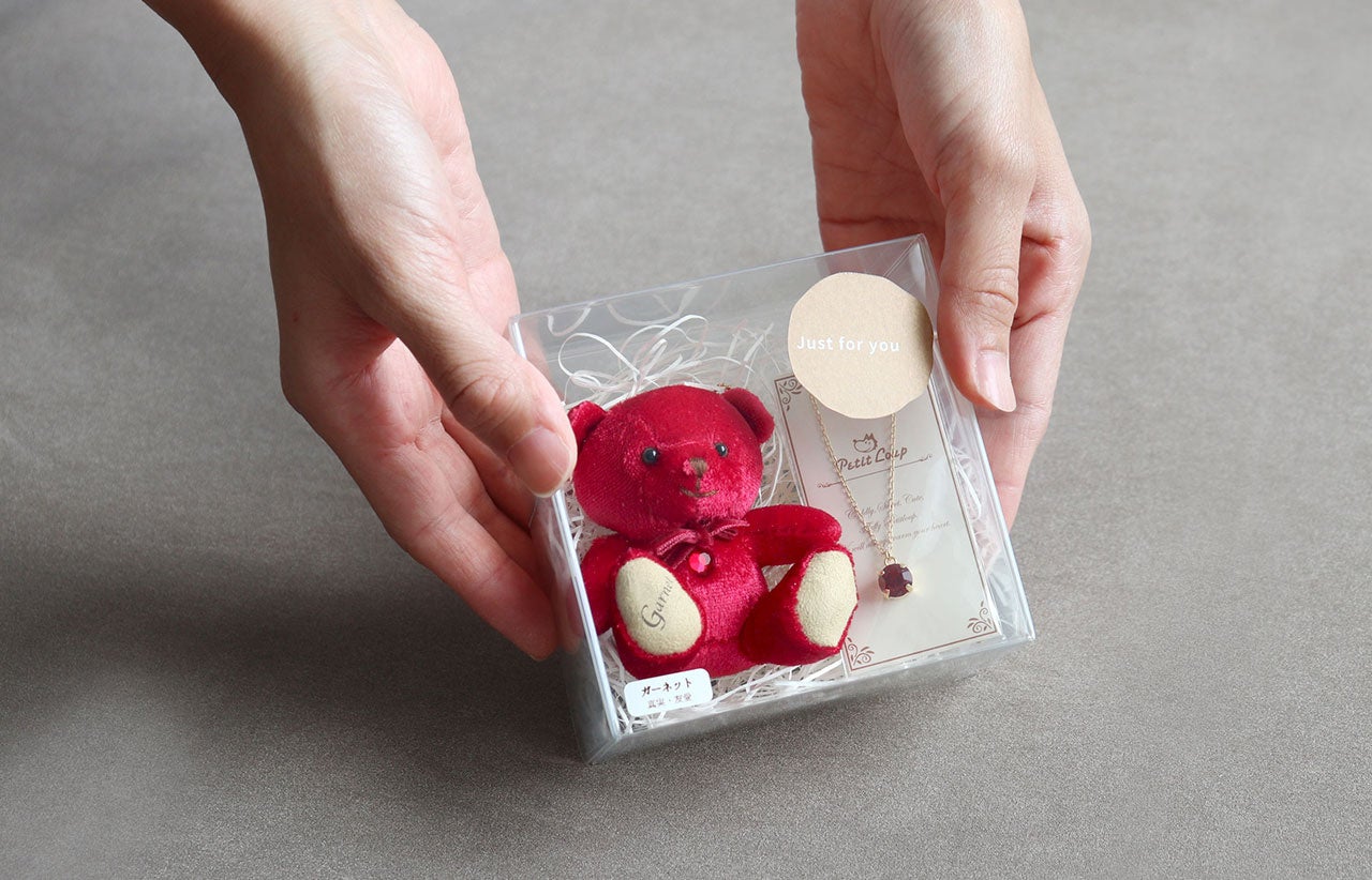 オリジナルテディベアの企画、製造、販売を行う株式会社プティルウ(所在地:大阪府泉佐野市、代表取締役社長:長田和人)は、誕生日や結婚記念日のギフトに最適な「宝石ベアネックレスギフト」を発売開始しました。
