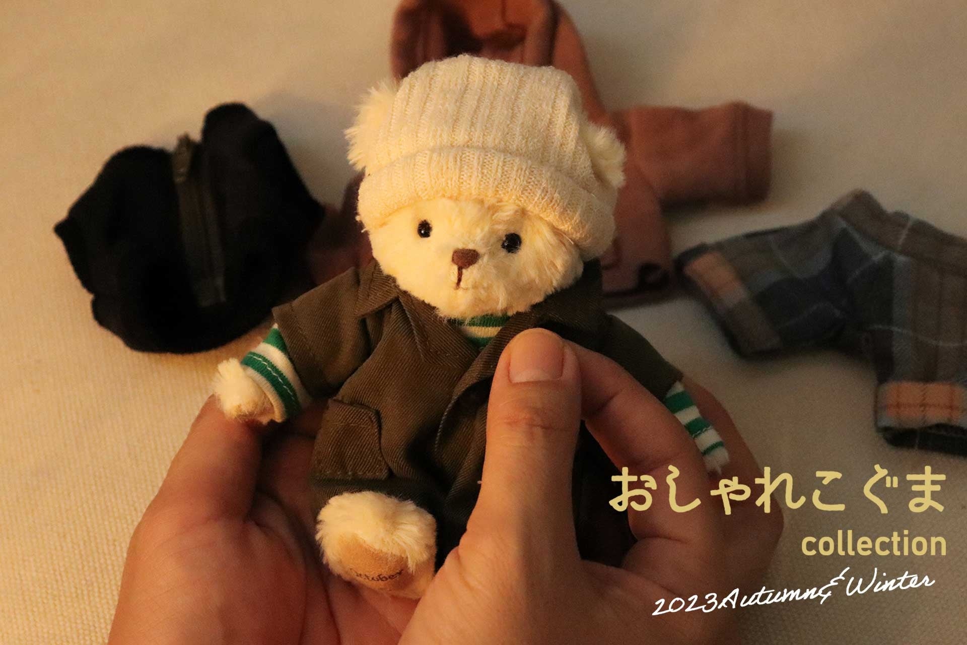 おしゃれこぐまcollectionは身長12cm(4Sサイズ)テディベア専用のコスチュームです。一年間に約4から5回、季節感を取り入れたアイテムを発表しています。