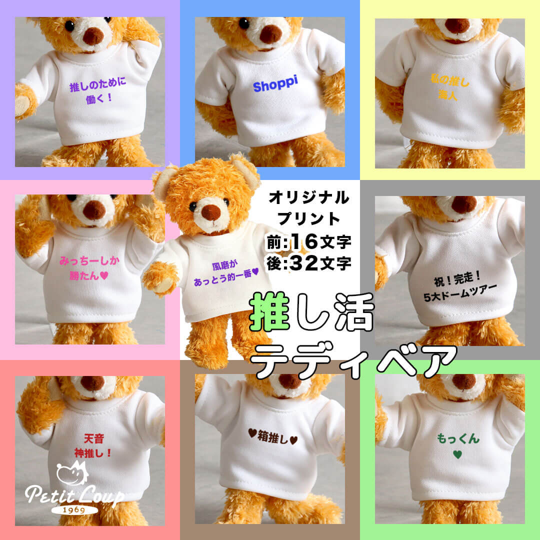 プティルウでは、オーダープリント込み以外の商品も別途プリントオプション追加(片足につき+660円)で、ほとんどのテディベアの足裏にお名前を入れることができます。(ご注文後2~4日後発送※土日祝除く)